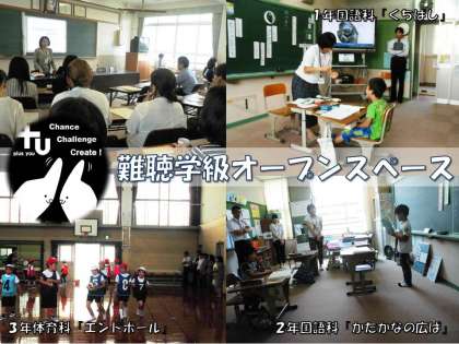 「難聴学級オープンスペース」は,障害のある子どもたちへの教育や育成学級(難聴学級含む)における学習や取組等について,保護者の方に知っていただくために行っている育成学級見学説明会です。