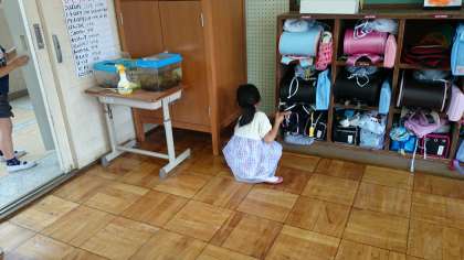 掃除しないとと思っていたら、先に掃いてくれている子がいました。