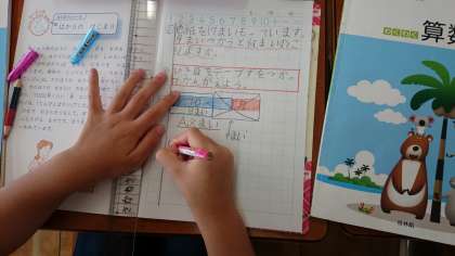 真っ白なノートに1文字1文字書き込まれていきます。丁寧に書いていることもさることながら、子どもの頭の中の考えが 、図になり言葉となり、どんどん表されていく様子に感動を覚えました。普段何気なく見ていた光景ですが、一冊のノートに一生懸命考えたことが蓄積されていっていると思うと、なんて素敵なことなんだと思えてきました。
