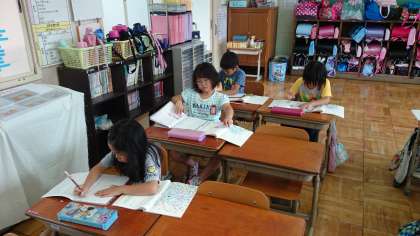 発表の前にノートに気に入った場面を書くと,集中して書いていました。