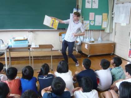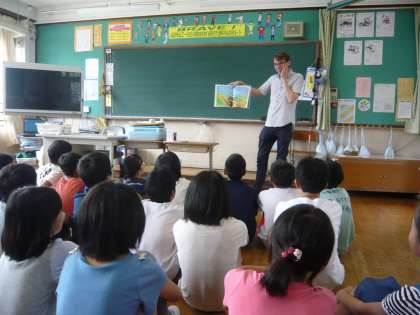 久しぶりにコーリー先生が来てくれました。今回は授業の初めに絵本の読み聞かせをしてもらいました。英語で楽しく読んでくださる姿に,子どもたちは大喜びでした。