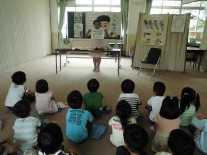 歯科衛生士の先生に来ていただく歯みがき巡回指導を,1年生で実施しました。「噛むことの大切さ」や「むし歯はなぜできるのか」などを学習し,最後に「正しい歯のみがき方」を実践しました。