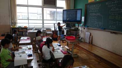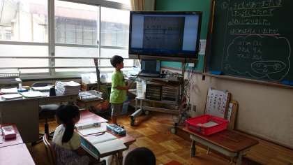 子どもたちが先生になって前で解決方法を説明していきます。