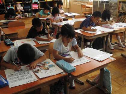 夏休みの自由研究に頑張って取り組んできました。1年生にとっては初めての自由研究ですが、お家の方のご協力もあり、しっかりと研究してきました。ご協力ありがとうございます。今、頑張って仕上をしています。