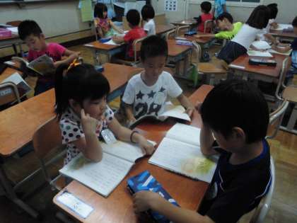 国語科「ゆうやけ」の音読練習をしました。いよいよ明日がグループごとの音読発表会をする日です。子どもたちは,グループ内で話し合いをして役割分担をし,音読練習をしていました。動きをつけたり,音読の仕方を工夫したりしてにこにこと練習している様子を見ると,明日の音読発表会が楽しみです。