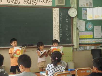 発表では,自分のすきな場面を選び,その理由を伝えてから音読しました。同じ場面でも読む人によって音読の仕方が変わります。他のグループの音読のよいところを探しながら発表会を楽しみました。
