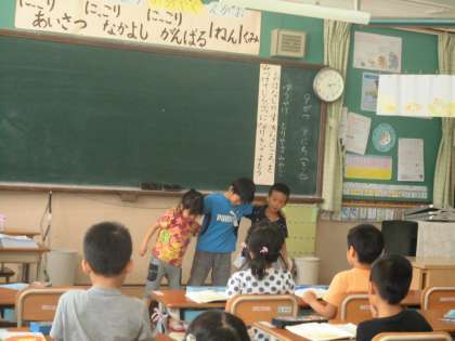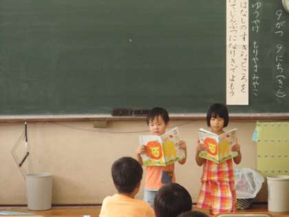 いよいよ,本日「ゆうやけ」の音読発表会を行いました。子どもたちはわくわくどきどき…少し練習をし,さらに動きを考えたり,読み方を考えたりして発表会に向けて準備しました。