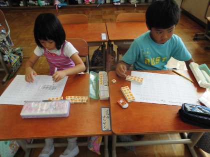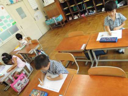 夏休みが明けて初めての土曜学習でした。たしざんやひきざんの計算練習。そして,いくつといくつの練習。集中してこれまでの復習をしました。