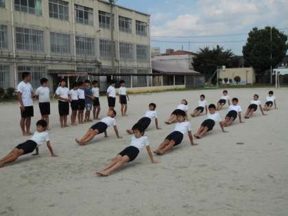 長期宿泊の代休が明け,先週の金曜日から組体操の練習が始まりました。といっても,長期宿泊中に6年生は練習を進めていました。初回はそんな6年生の演技を見せてもらい,見よう見まねで技に1人技に取り組みました。6年生は5年生の横について丁寧に教えてくれました。そのかいもあり,授業時間の後半には,1人技を6年生と合わせることもできるようになりました。