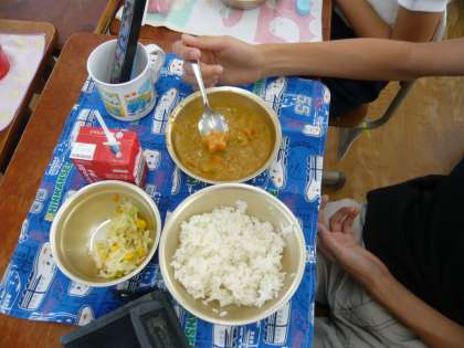 いつものおいしいカレーを食べている時に,「ラッキー人参」を見つけた子どもがいました。