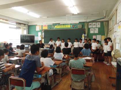 運動会が終わり,ホッと一息の5年生・・・かと思っていると,何人かから「ぼくたちも朝,6年生と一緒に走ろう!」との声が。クラスの子たちに呼びかけ,大文字駅伝の支部予選会にむけて,朝ランニングに取り組んでいる6年生と一緒に,「みんなで走ろう!」ということになりました。さっそくその日のうちに6年生の教室へ行き,「一緒に走らせてください!」と思いを伝えに行きました。6年生は「一緒に頑張ろう!」と温かい言葉をかけてくれました。明日から一緒に走ります。
