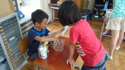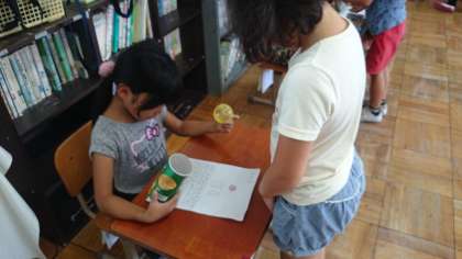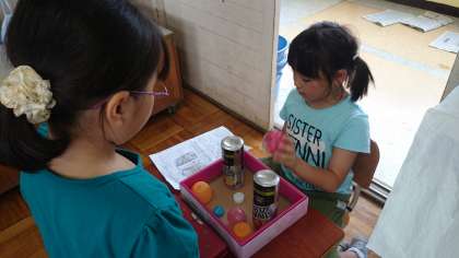 ということを目標に発表しました。はじめは難しかったようですが,何人も聞きに来て説明を繰り返すうちに実物を動かしながら,あそびの説明ができるようになっていきました。