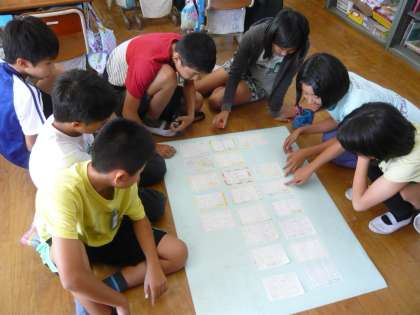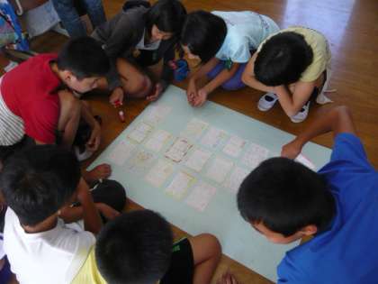 小学校へ帰ってから感謝の気持ちを込めてメッセージカードを書きました。「自分たちで分担して作ります」という自主的な姿を見せてくれました。