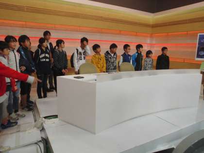 番組づくりが終わったあとは,スタジオ見学となんでも学習です。実際のニュース番組の放送の際に使われているスタジオを見せていただきました。カメラや照明など,たくさんある機材についての説明もしていただき「なるほど!」という声がたくさんあがりました。なんでも学習では,番組ができるまでの様子を映像で見せていただき,その後,たくさん質問をさせていただきました。実際に番組づくりに携わっておられる方のお話を聞くことができ,勉強になることがたくさんありました。ここでも「なるほど!」がたくさん聞こえてきました。体験をしたり,たくさんのものを見せていただき,大変いい経験になりました。学習に生かしていきましょう。