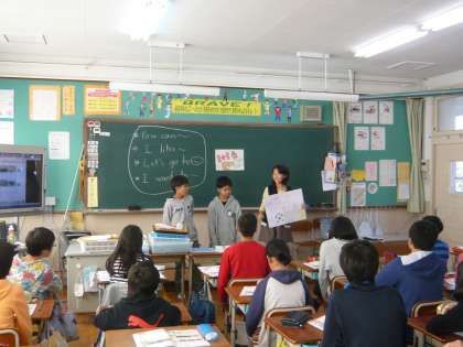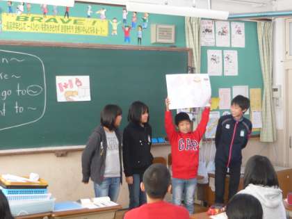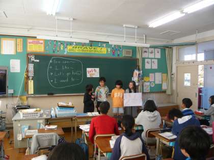 外国語の学習では,自分たちのお気に入りの国を選び,その国について調べたことをポスターにまとめて発表しました。
