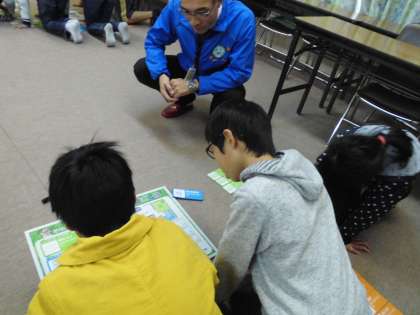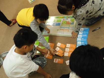 企業の講師の方をお招きし,環境学習をしました。二酸化炭素排出量を削減するために,毎日のくらしを見直しました。家庭で毎日続けられる取組をグループごとにゲーム形式で考え,話し合いました。日々の生活を見直し,ちょっと意識することで二酸化炭素排出量を減らすことができることが分かりました。二酸化炭素排出について「しっている」だけでなく「している」と胸を張って言えるようになったらいいですね。