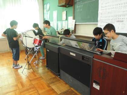 音楽では合奏をしました。曲は『威風堂々』です。リコーダー,鍵盤ハーモニカ,鉄琴,木琴,大太鼓,小太鼓,タンブリン,トライアングル,オルガン,バスマスター等を使い演奏しました。毎回担当する楽器を変えて合奏しました。自分たちの演奏をよりよくするにはどうしたらよいか意見を出し合いました。「メロディが小さすぎひん?」「打楽器の音の大きさをもうちょっとおさえた方がいいな。」「曲の最後はクレシェンドで!」などと積極的に意見を出していました。