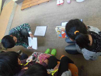 就学時健康診断がありました。5年生は会場準備と新入生の誘導をしました。事前に入念に動き方の確認をしたものの,緊張しているのは新入生より5年生・・・!?という様子でした。それでも,待ち時間には新入生をいすに座らせてあげ,絵本の読み聞かせをするなど,素敵なお兄さん・お姉さんの姿を見せてくれました。