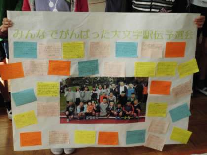 朝の会が終わったころに…6年生が教室に来てくれました。金曜日に大文字駅伝を頑張っていた6年生に書いたお手紙のお返事を持ってきてくれました。その時に,結果も教えてもらいました。1年生は,6年生からのお手紙をもらい,嬉しそうでした。廊下に掲示すると,さっそく読みに行っている姿も見られました。