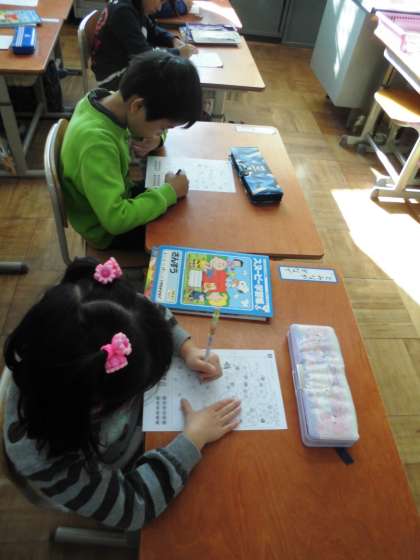 算数科の「大きい かず」では,10のまとまりをつくって数えることの良さを学びました。そこで,バラバラに書かれている「キャンディー」や「コンペイトウ」の数を数えました。10ずつ数えて,鉛筆で〇しながら一生懸命数えました。