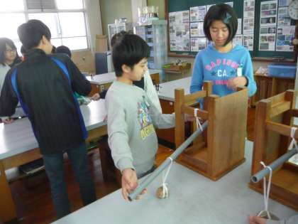 理科では,てこのはたらきの学習を始めました。まずは「てこ」の仕組みを知り,どのような特徴があるのかを実験を通して学習しました。