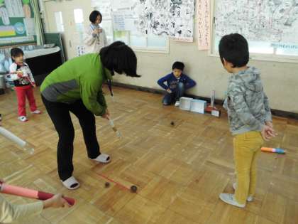 これまで準備してきた大作戦です。今日は,近くの保育園の先生にお越しいただき,保育園の子どもたちでも楽しめる内容になっているか,またわかりやすい説明になっているかを見ていただきました。