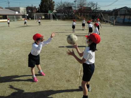 体育でパスゲームの学習に入りました。初めての時間なのでパスをしながらゴールする練習をしました。グループの中の1人がゴールマンです。残りの3人でパスしながらボールをゴールマンのところまで運びます。約束は,ボールを持っている人は動けないということです。周りの人が少しでもゴールマンの方に近づきながらパスをもらい,次の人にパスをつないでいきます。ゴールマンを変えながら,何度も練習しているうちに,上手にパスしたり,キャッチしたりができるようになってきました。