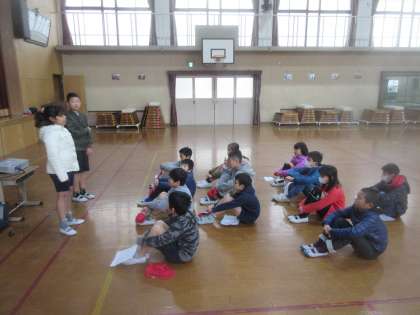 4年生は,明日の半日入学で,次の年度の1年生(新1年生)に向けて出し物をします。