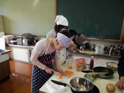 6年生は,3月15日午後の感謝パーティーに向けて,午前中に調理実習を行いました。お世話になった保護者や地域の方に感謝の気持ちを表すために,劇の練習をしたり調理の計画を立てたりして当日を迎えました。来ていただく方々に喜んでもらうのを楽しみにしながら,調理をしています。