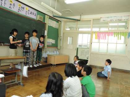 箱の中に入れたサイコロの「め」を箱を開けないで当てるというマジックでした。さいころの「め」が見事正解すると,「えー。なんで?」「どうして?」「あっ。わかった。」といろいろ思考を巡らせている子どもたち。でも,なかなか種は分からないようでした。その後もマジックの種についてあれこれ考えている様子が,とても微笑ましい光景でした。