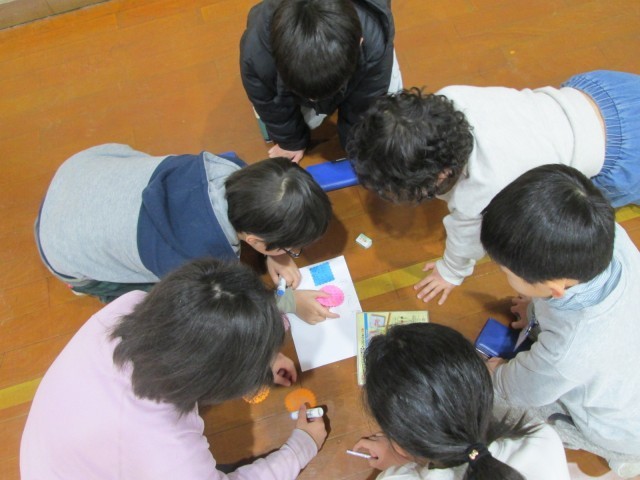 6年生を送る会の準備として、1~5年生のたてわり活動がありました。