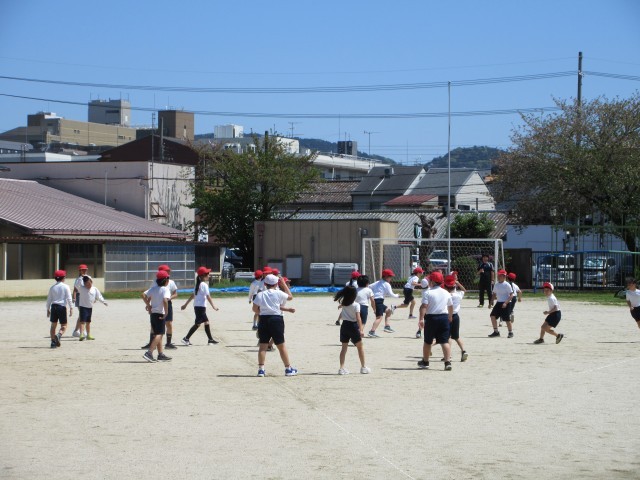 4月16日(木)3年生と4年生合同で、体育の学習で50mのタイムを計りました。元気な声で準備体操をして、50mのタイムの測定。少し緊張しながらも、スタートからゴールまで全力で走りきることができていました。少し時間が余ったので、3年生と4年生合同で「ふえ鬼」をして楽しみました。