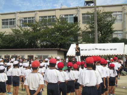 それぞれの色の応援団長が「選手宣誓」を行いました。これからみんなでがんばろう!という気持ちにあふれたすばらしい宣誓でした。また,PTA会長様も子どもたちに励ましの言葉をくださいました。