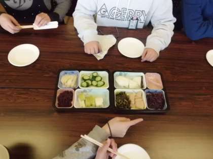 初め,つけものが苦手だと言っていた子どもも,実際に食べてみると「しば漬けおいしい。」「つけものがあれば,何杯でもごはんが食べられる」と,とてもおいしそうに食べていました。
