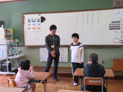 4月10日(火),3組では学級開きで自己紹介をしました。「すきなたべもの」や「すきなあそび」について一人一人がお話をしました。校長も飛び入り参加して,自己紹介をしました。子どもたちも楽しそうにしてくれていました。
