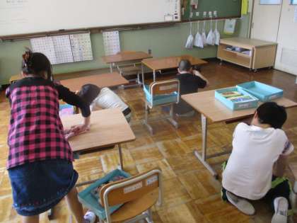 3枚目の写真は大そうじのときの様子です。みんながんばって,教室をきれいにしていました。