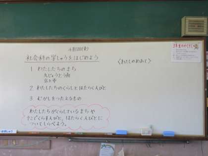 4月13日(金),3年生では初めての社会の学習をしました。2年生まで生活科という学習はありますが,社会科や理科はありません。初めての学習のこれからの見通しをみんなでしました。ふりかえりでは,学習のめあてとして「社会科でどんなことを勉強したいか」ということを一人一人が書いていました。(ノートもていねいに書いていましたよ)