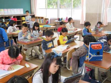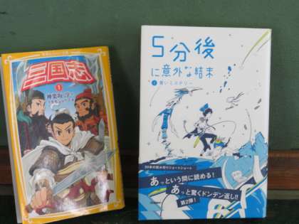 1年生では,まなびの先生が絵本の読み聞かせをしてくださっていました。子どもたちは静かに聞き入っていました。2年生も自分たちで静かに本を読んでいました。3枚目の写真は,6年生が読んでいた本をピックアップしてみました。左は歴史の本。右側はすぐに読める短編ミステリーです。どちらも入り込むと読むのが楽しそうですね。