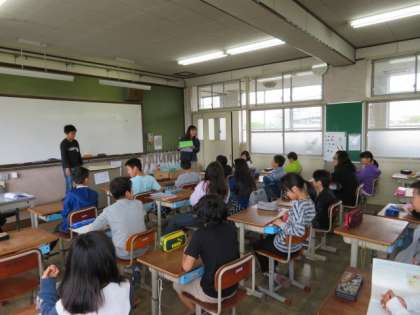 朝のさわやかタイムのあとの「朝の会」の様子です。高学年らしくとても落ち着いた雰囲気の中で進んでいました。健康観察と同時にハンカチ・ティッシュ調べも行われていました。全員がきちんと持ってくることができていました。当たり前のことに見えますが,全員そろって・・・というのはやはりうれしいことです。今後も続いてほしいですね。