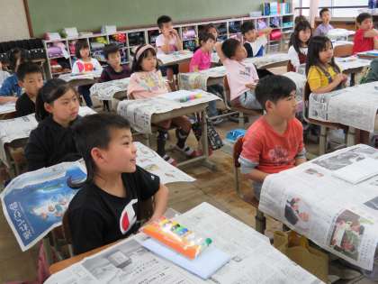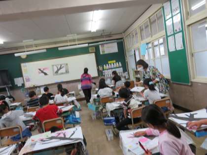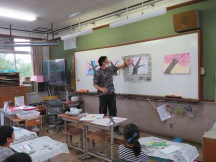 4月17日(火),図工の学習では「さくらの絵をかこう」という学習をしました。前時に描いておいた桜の幹に指でトントンしながら桜の花びらを描いていく活動でした。子どもたちはすごく楽しんでいました。