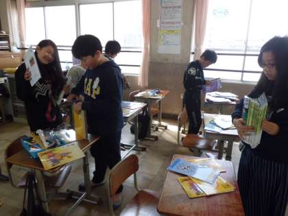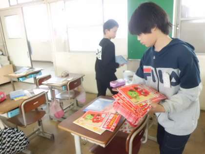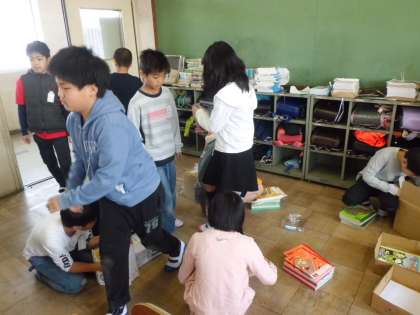6年生になり,新しい教科書が届きました。みんなで梱包をといて配りました。