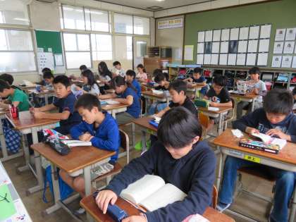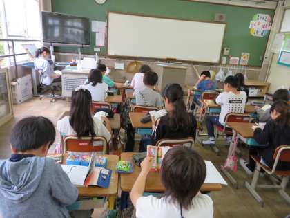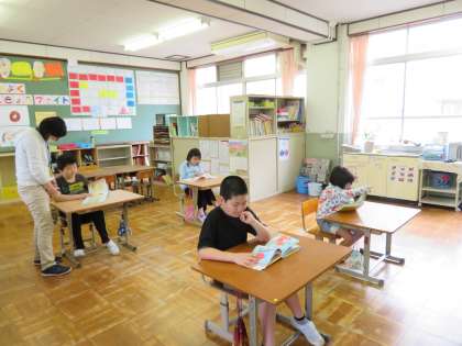 4月25日(水),「朝のさわやかタイム」の様子です。子どもたちは今日も静かにいろいろな本を楽しんで読んでいました。子どもといっしょに本に向かっている担任の先生もいました。