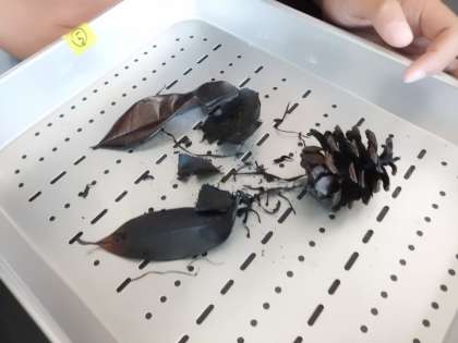 理科「ものの燃え方」の学習で,木や葉,松ぼっくりの炭づくりをしました。子どもたちは,もくもくと立ち昇る煙に驚いていましたが,出来上がった炭を見て更に驚いていました。