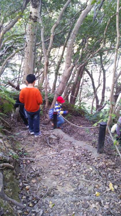 九条弘道小の友だちと協力して歩きました。コースの中には,少し急な山道もありましたが,みんなで助け合いながら,一歩一歩進んでいくことができました。