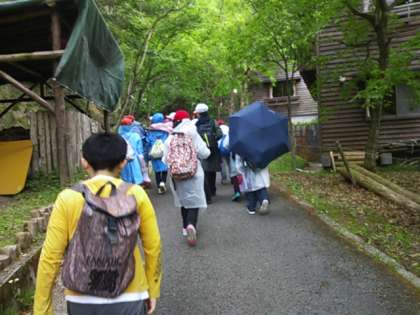 所内をグループのみんなと巡ったオリエンテーション。上り坂や山道ばかりのコースでしたが,3組の子どもたちも元気に活動していました。