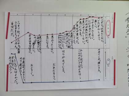これまでの学習でつくってきた心情曲線や読み取りをもとに子ど達は意見を交流して読みを深めていました。