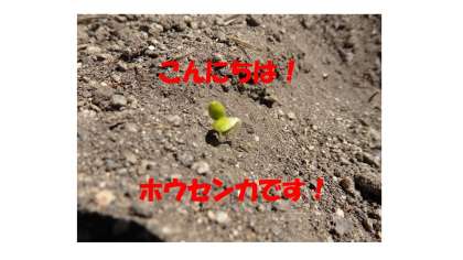 となりの畑では,ホウセンカの芽も顔をだしていました。次,学校に登校したらぜひ見に行ってください。
