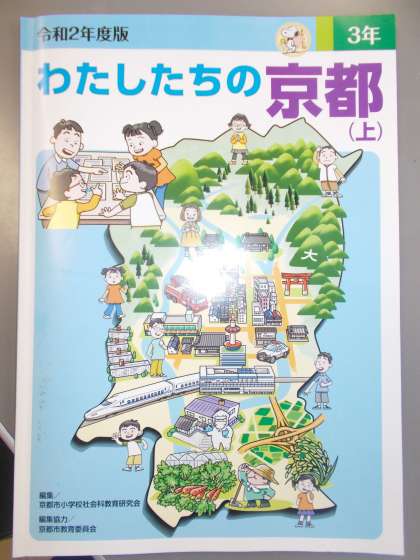 社会の授業があるときは,この「わたしたちの京都」をつかいますので,もってきてくださいね。