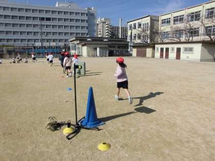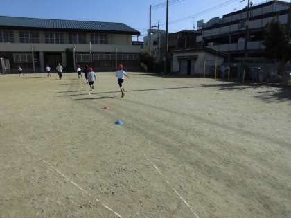 今日は体育の「ゆっくりかけあし」の最後の学習の日でした。