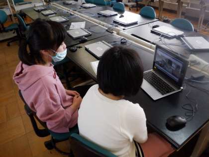 本番に備え,今日は3組の教室とコンピュータ室に分かれて,塔南の5人だけで自己紹介やゲームの練習をしました。
